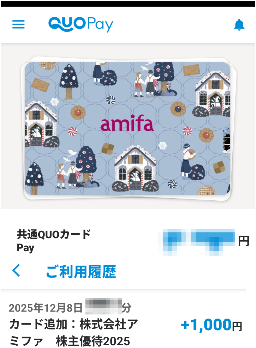 【 株主優待 到着 】 (100株 継続保有3年以上) 1,000円分QUOカードPay ※カードからPay に変更 ー。