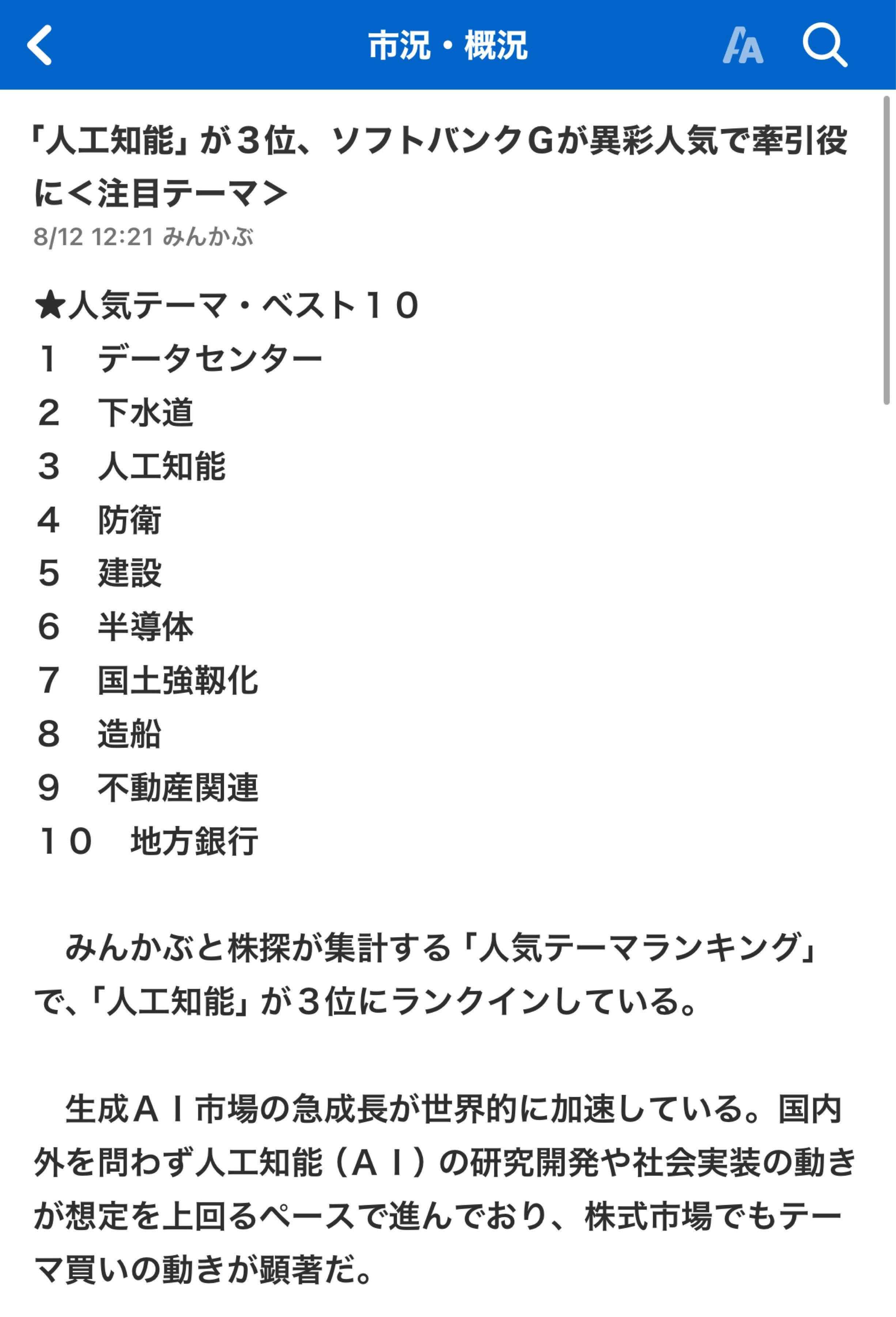 ニュースに掲示されているけど、人工知能テーマでここも拾われてるのね。それで微妙に上がってるのか。