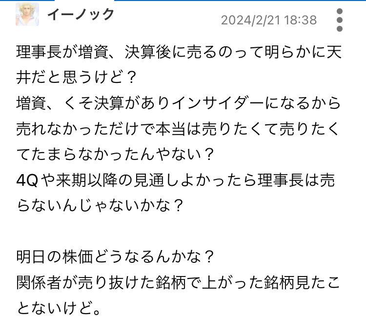 持株会が売ってるという誤った情報流した人に怒るわなw