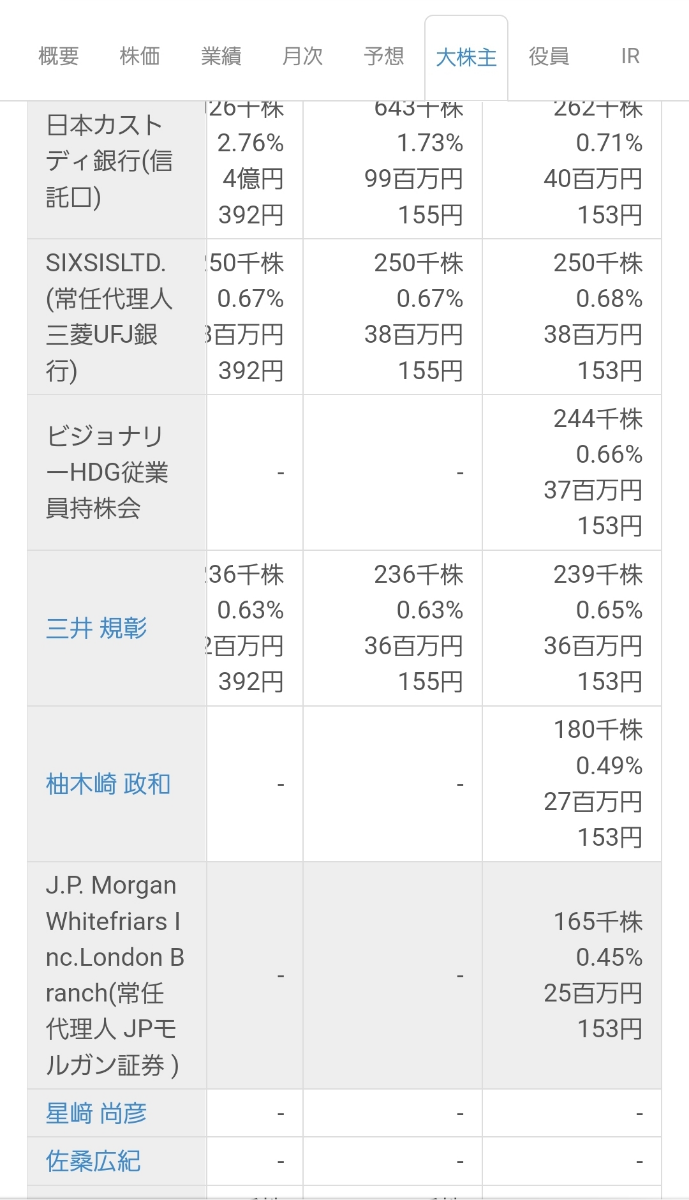 ただ、直近の大株主2023年4月って、三井氏も入っていたようですが、これは会社で買い取りとかしているのでしょうか?