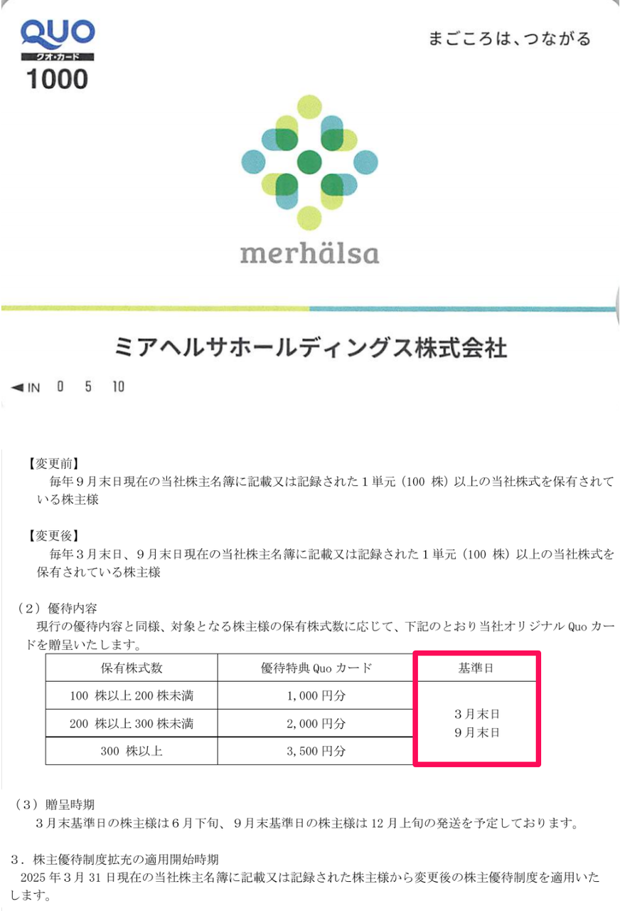【 株主優待 到着 】 (100株) 1,000円クオカード ※年2回に優待拡充されたのですな。(今までの9月に加えて、3月も) ー。