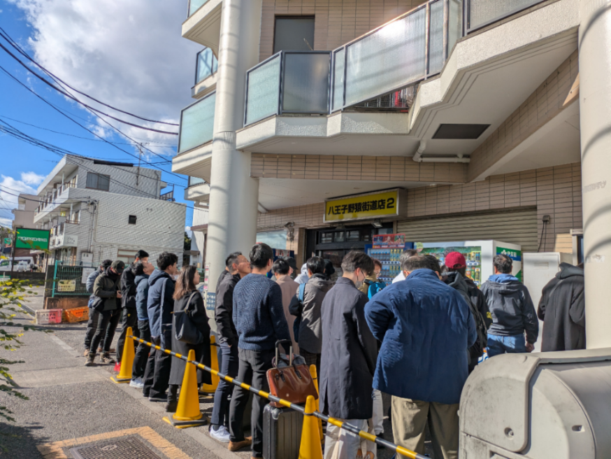 はい、ラーメン二郎野猿街道店。本日は朝8時から営業11時半時点で並びはこのくらい🍜