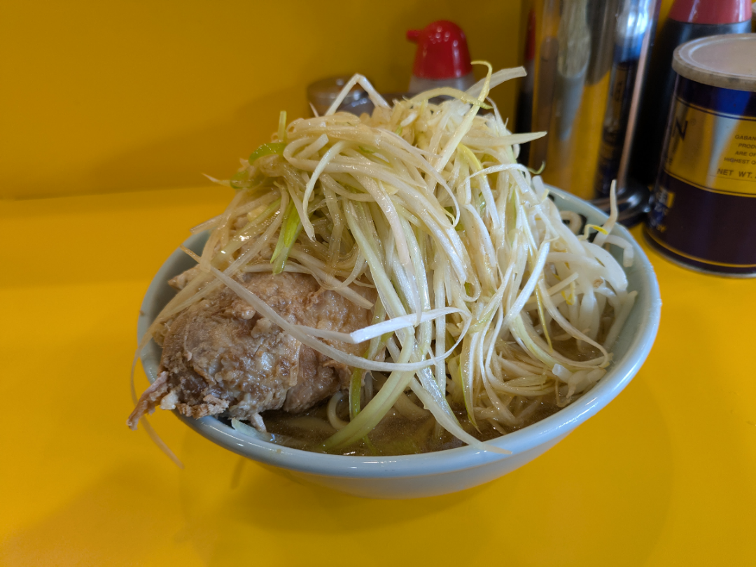 プチ盛りネギ増し。味は豚山より濃いめ?今さら二郎かと思われるかもしれないが、旨かった🍜😂😂🤣