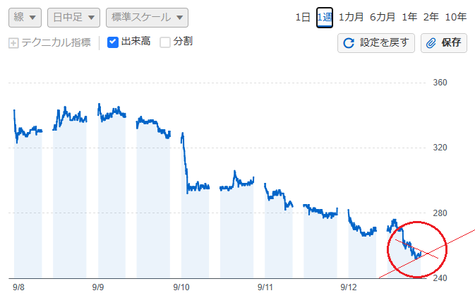 気づきました!昨日の赤と今日の緑のラインをもらいわかりました!