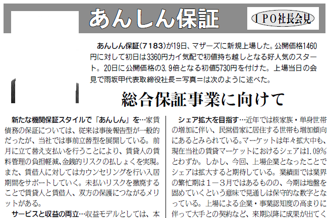 【 10年前(2015年) 】 上場年月日 2015年11月19日 ー。