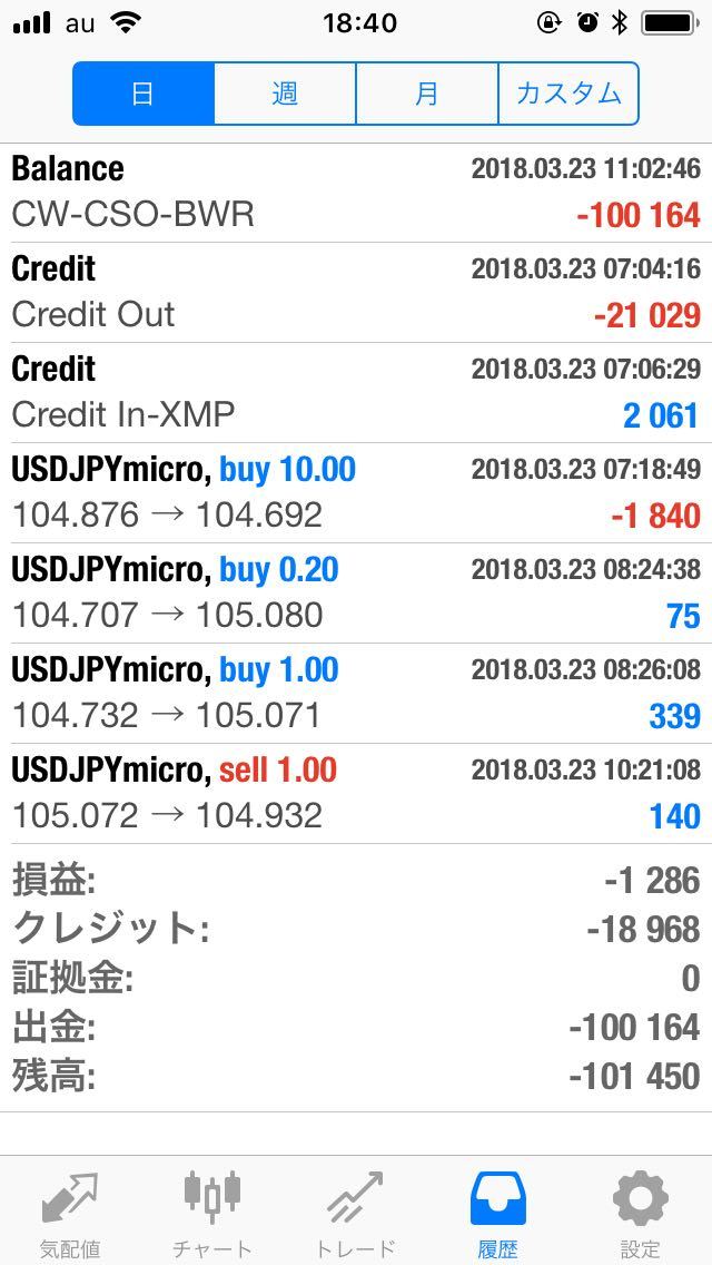 XMPというポイントをクレジット証拠金に替えられるって聞いたから早速2,000ちょいに変えて10,000通貨で何のプランもなくポジったら、早速バカやって19ピプスでロスカット。(( _ _ ))