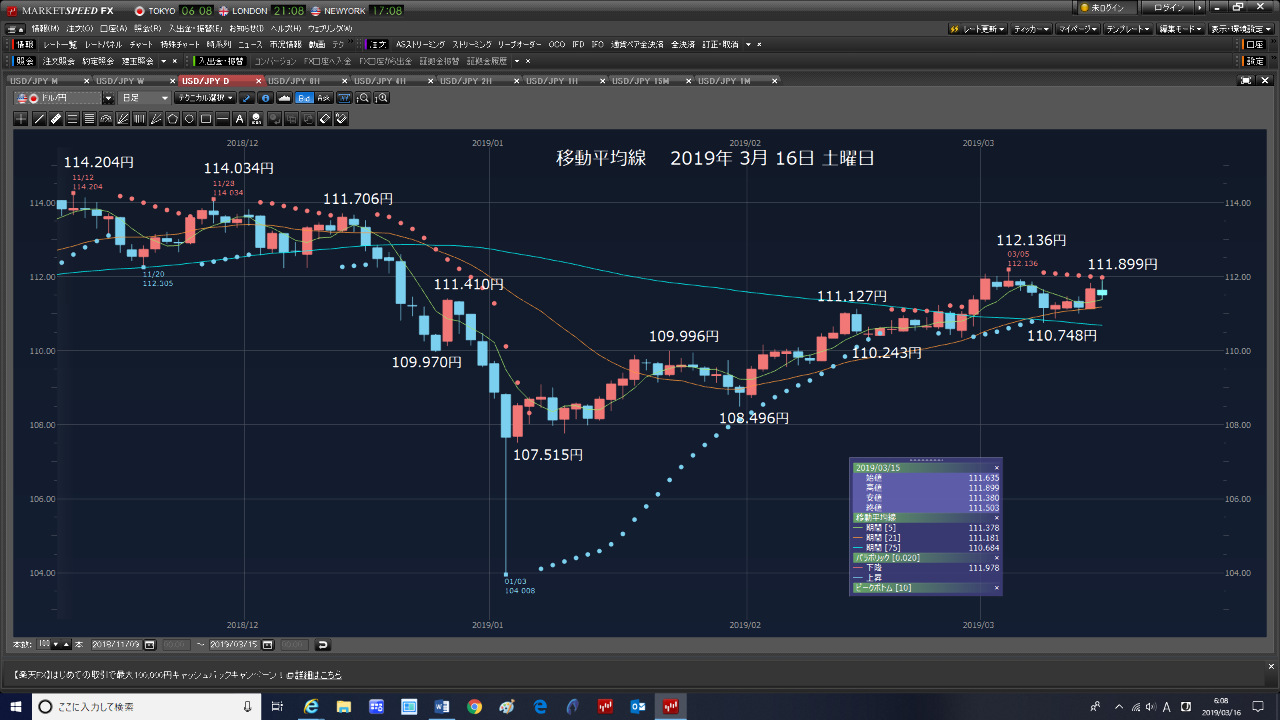 移動平均線 2019年3月16日 土曜日です。