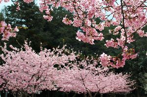 (「満開で天気がよい日」に恵まれず)大変でした。