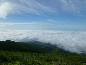 振り向くと雲海が..「下界からは 富士山の姿は見えていないんだろうなぁ」と思いながら、黙々と登る店長^^