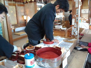 画像は 久須志神社の神職さんが朱印を押してる姿です^^