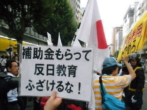 「歴史修正主義の教科書だ」、「戦前の軍国日本の肯定」などとして反対運動をしており、