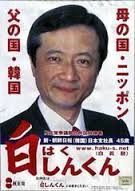 • 2004年7月12日、初当選直後に民団中央本部に挨拶に訪れ、「これからがスタート。在日に勇気と希望、元気を与えたい。在日も韓国系日本人も結集し、みんなの力で地方参政権を獲得しよう」と述べると、民団の呂健二副団長は「ねじを巻き直して在日の参政権運動にともに邁進しよう」と応じた。