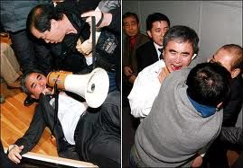 韓国で真実を言ったがために暴行を受けるアン・ビョンジク教授 ↓