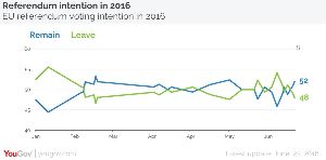 前回調査(14━17日実施、18日公表)では、離脱派、残留派が44%で並んでいた。