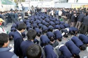 日本の修学旅行生の土下座など