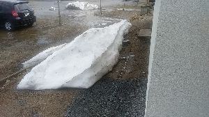 日が差しているので、たくさん残っている家の裏の雪もかなり消えるでしょう