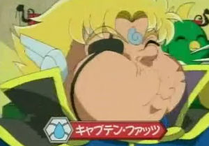 普段は大食いで怠け者な「キャプテンファッツ」だが、走ったり、汗をかいたり、火にあぶられたりと、やせる行為を行うと、一転して頼れる美形ヒーロー「キャプテンガッツ」に転身する。