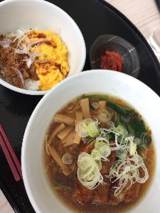 鶏そぼろ丼付きパーコー麺、マズくはないが美味くも無い味😕