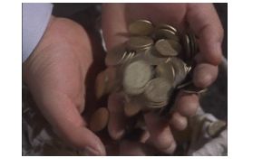 冒頭の赤マントのTVドラマシーン、金貨がザックザクと思いきや10円玉を金色に彩色しているんですね。
