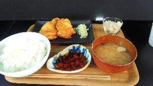 仙台市中央卸売市場の食堂街にある唐揚げにこだわっておりますお店のキジトラさんの唐揚げ定食です。