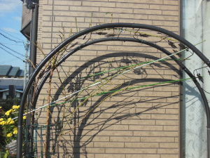 トレリスが傾いてあまり引っ張れなくなっています。大きくなっても良し悪しね。