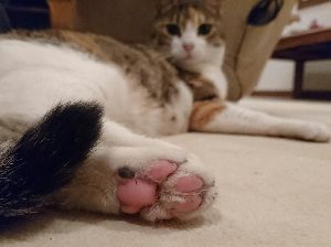 肉球は黒いんだけど、いつの間にか綺麗なピンク色に戻ってるんだ💦