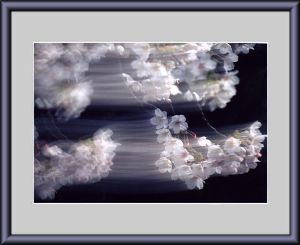 (解説)桜が風に吹かれ残像が残っています、人の目には見えませんのが
