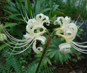 庭では変わり花?おしべの無いヒガンバナ ホトトギス コスモス 孔雀草 ミセバヤ
