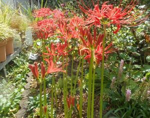赤い彼岸花と変わり花は中日には間に合いそうかな