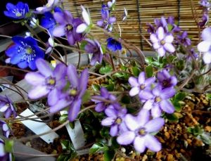 春の山野草展用の物が多く斑入り鉢や寄せ植え物が多く残っていて思案中です