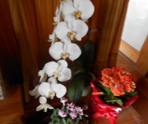今日は 敬老の日に孫たちからのプレゼント カランコエと共に玄関の花で…
