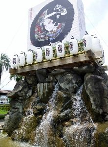 岩と水の流れは 関之尾の滝をイメージして作られたそうですょ