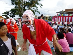フォトは 土曜日の保育園の七夕祭りの一コマ ひょっとこ踊り