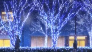 その今回のOPに、雪ノ下雪乃(早見沙織)と由比ヶ浜結衣(東山奈央)の二人のヒロインが、雪が降る中、立ち上がって別方向に歩いていくシーンがあるわ。