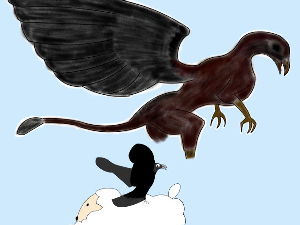 犬は、その肉を奪ってやろうと吠えながら