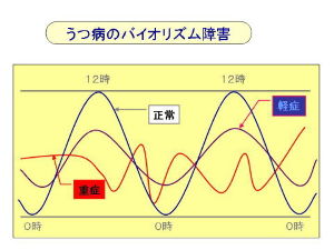 下の図はうつ病の方の一日の気分の浮き沈みを表したものらしいですが、精神的に健康な人でも一日の気分の浮き沈みは「電磁的な波」として十二分に解釈できます。