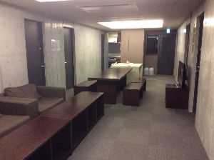 写メは共用スペースで大型画面テレビと奥が共用キッチンになります、スケジュール的に僕には少々無理あるのですが、1週間程度の滞在なら自炊で十二分に生活可能な宿泊施設と思います、なんせ綺麗な建物なのと、朝日が瀬底大橋向きに拝めるので気持ち良いですよ