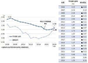 あら、大変。 最近、金利上がってきてるみたいですわね お車の値段とか、あがっちゃうのかしら ジャパンディスプレイのパネルとかも? 来年は、日本どうなるのかしら~~ 全国平均借入金利動向調査(2024年度) 企業の平均借入金利1.20% 3年連続上昇 2年連続1%超え ~上昇幅は2006年度以降で最大~ 2025/12/17 https://www.tdb.co.jp/report/economic/20251217-heikinkariirekinri/ 3年連続で平均借入金利上昇、2年連続1%超え 2024年度の企業の平均借入金利は1.20%となった。前年度から0.16ポイント上昇し、上昇は3年連続。2006年度の調査開始以降、上昇幅は最大となった。 企業の平均借入金利は、2007年度(2.33%)をピークに2021年度まで14年連続で低下し、2020年度には新型コロナに伴う実質無利子・無担保の融資(コロナ融資)拡大で大きな下げ幅となったが、2023年度以降はコロナ融資の借り換えや一般融資における金利上昇などによる影響が表れ、2024年度は長期金利が1%を大きく上回ったことも上昇圧力となった。長期金利が平均借入金利を上回ったのは、2006年度の調査開始以降、初めてとなる。
