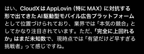 影響があるのはゲームセクターだけですね 保有でも大丈夫でしょう ゲーム開発向けのAIはUnityという同様の開発ツールが代替されるだけであって、AIツールでソフトの開発はできますが、それはコーディングの話であって、業務向けパッケージの設計はできません。 ここはBtoBの基盤が硬いので大丈夫だと思います。