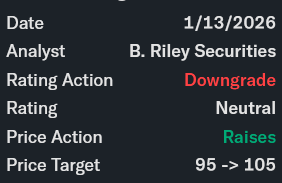 LV1初心者No.164902026/1/13 22:16報告Bライリーが”買い”から”中立”へ引き下げたか・・・現状の進捗から考えると妥当とも言えるか(^^;)問答無用で噴き上げる材料が欲しいところw返信投資の参考になりましたか?はい18いいえ6
